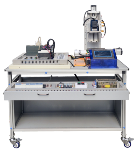 本設(shè)備主要由底板、伺服電機及伺服驅(qū)動器、固高運動控制系統(tǒng)、觸摸屏、高精度絲桿傳動機構(gòu)、托板、限位傳感器組件、鋁合金導(dǎo)軌式支架等組成。它是一種將運動控制器、交流伺服電機調(diào)速、傳感器應(yīng)用、位置控制、復(fù)雜的開關(guān)量控制、時序邏輯控制有機結(jié)合成一體的教學(xué)裝置。