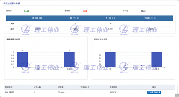 該模塊將課程目標(biāo)的達(dá)成度結(jié)果,根據(jù)階段性成果維護(hù)的數(shù)據(jù),進(jìn)行系統(tǒng)自動(dòng)計(jì)算,計(jì)算的結(jié)果按照課程達(dá)成度、課程目標(biāo)達(dá)成度進(jìn)行逐級(jí)展示。系統(tǒng)支持針對(duì)達(dá)成度結(jié)果設(shè)置顏色預(yù)警,便于快速發(fā)現(xiàn)不達(dá)標(biāo)的指標(biāo)。且系統(tǒng)支持針對(duì)每一個(gè)課程目標(biāo)的達(dá)成度結(jié)果,進(jìn)一步鉆取獲得每一個(gè)學(xué)生的實(shí)際結(jié)果數(shù)據(jù),便于進(jìn)一步分析出問題的學(xué)生和出問題的步驟。