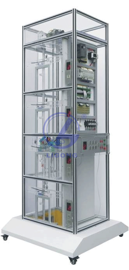 電梯是根據(jù)常見(jiàn)的升降式電梯結(jié)構(gòu),采用透明有機(jī)材料制成,其結(jié)構(gòu)與實(shí)際電梯完全相同,且?guī)缀蹙邆淞藢?shí)際電梯的所有功能。事實(shí)上可以把它看作是小型化了的真實(shí)電梯。為了便于教學(xué),電梯大部分部件均是采用透明有機(jī)材料制成,使得電梯的內(nèi)部結(jié)構(gòu)一目了然;同時(shí),電梯的運(yùn)行過(guò)程,以及每個(gè)動(dòng)作都十分明了,且可以反復(fù)實(shí)際動(dòng)手操作。使學(xué)生能夠很直觀、透徹地了解、掌握電梯的結(jié)構(gòu)及其動(dòng)作原理,達(dá)到事半功倍的效果。解決了以往電梯教學(xué)中單純的理論教學(xué)方式或是參觀實(shí)際電梯時(shí)所帶來(lái)的不安全,無(wú)法全面了解其內(nèi)部結(jié)構(gòu)及運(yùn)行過(guò)程等種種實(shí)際問(wèn)題。
