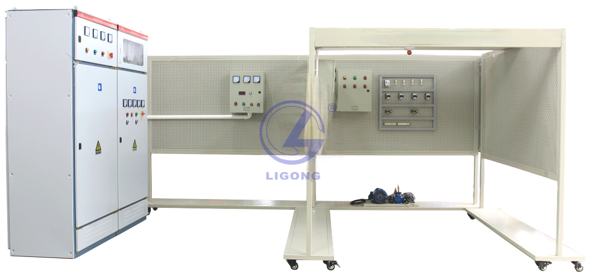 (7) 電動(dòng)機(jī)機(jī)組、變壓器:配有電動(dòng)機(jī)安裝平臺(tái)一套、350W直流電機(jī)一臺(tái)、1.1kW三相鼠籠式異步電動(dòng)機(jī)一臺(tái)、5kVA干式變壓器一臺(tái)帶無(wú)載分接頭,分別可以正負(fù)5%和10%無(wú)載調(diào)壓。
