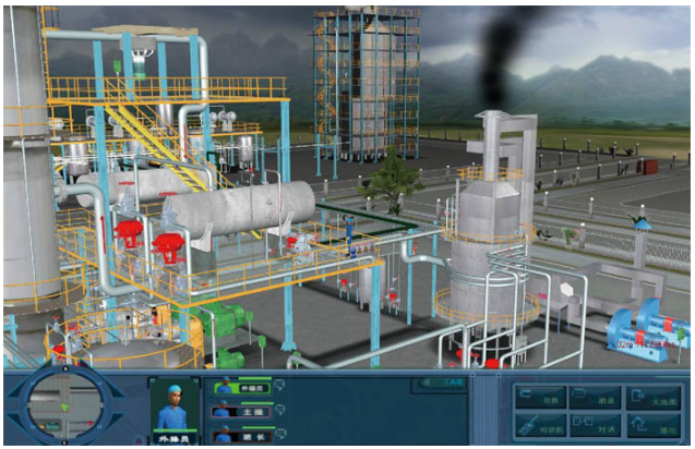 按實(shí)際現(xiàn)場(chǎng)設(shè)備的外形、尺寸、顏色、位置關(guān)系及距離、管線連接方式、音響效果等物理屬性建立3D場(chǎng)景和設(shè)施,包括防火堤、滅火器、消防水炮等各種安全設(shè)施。