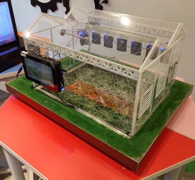 TYK-NY05型 智慧農(nóng)業(yè)沙盤實(shí)訓(xùn)系統(tǒng)(參考尺寸(可定制):120cm×80cm×80cm),通過(guò)采集大棚內(nèi)空氣溫濕度、光照度、土壤濕度、二氧化碳濃度等數(shù)據(jù)信息,經(jīng)過(guò)WiFi組網(wǎng)到網(wǎng)關(guān)、網(wǎng)關(guān)通過(guò)以太網(wǎng)或4G網(wǎng)絡(luò)傳送給云服務(wù)平臺(tái),經(jīng)過(guò)分析處理,通過(guò)WEB頁(yè)面展示農(nóng)業(yè)生產(chǎn)環(huán)境的數(shù)據(jù)信息,控制加濕器、通風(fēng)扇、補(bǔ)光燈、遮陽(yáng)簾、點(diǎn)陣屏等執(zhí)行器的工作狀態(tài)。同時(shí),系統(tǒng)支持視頻采集,用戶可通過(guò)物聯(lián)網(wǎng)網(wǎng)關(guān)、WEB監(jiān)控平臺(tái)、移動(dòng)端近場(chǎng)或遠(yuǎn)程視頻瀏覽大棚的實(shí)時(shí)狀況。系統(tǒng)支持用戶自定義控制決策,實(shí)現(xiàn)農(nóng)業(yè)生產(chǎn)環(huán)境的自動(dòng)調(diào)節(jié),達(dá)到促進(jìn)作物生長(zhǎng)的目的。