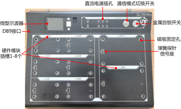 通用基礎(chǔ)平臺由平臺基座與垂直網(wǎng)板組成,符合人體工學(xué)設(shè)計(jì)?;_模設(shè)計(jì),采用ABS材料,表面光滑,有質(zhì)感,有對應(yīng)絲印圖,美觀,大氣;基座具有DB9通信接口,3.3V/5V/12V電源插孔,通信選擇開關(guān)、總電源自鎖開關(guān);內(nèi)嵌微型示波器,可完成電路供電測試及工作過程關(guān)鍵點(diǎn)測試,能夠在電路原理學(xué)習(xí)基礎(chǔ)上完成實(shí)踐中的驗(yàn)證測試,達(dá)到理實(shí)一體效果;具有8個SLOT插槽,磁吸固定孔,彈簧頂針管腳,可與硬件模塊磁性吸合,頂針連接,完成供電、RS485、RS232等標(biāo)準(zhǔn)總線通信。硬件模塊任意組合,支持各種場景應(yīng)用,每個模塊都有通信地址和硬件電路測試點(diǎn),讓學(xué)生不僅懂得硬件電路原理,還可使用示波器測試硬件電路工作的瞬態(tài)過程。垂直網(wǎng)板是金屬網(wǎng)孔板,能磁吸或螺絲固定商用設(shè)備,用于用戶實(shí)驗(yàn)拓展。