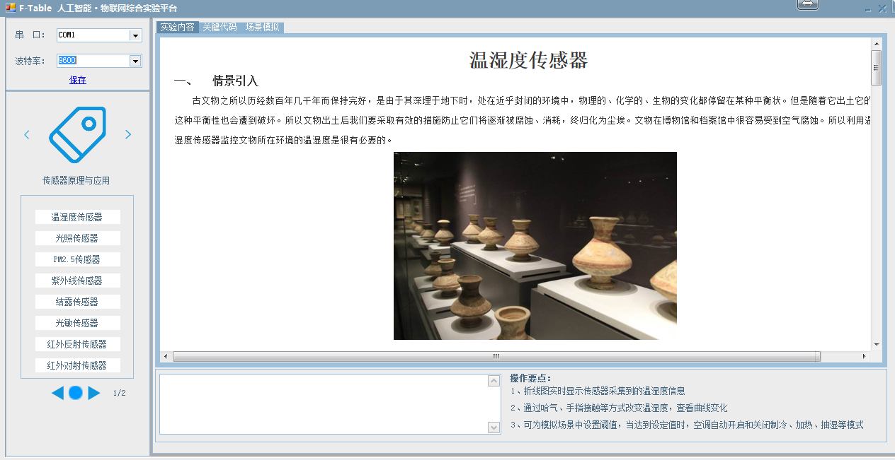 在C#軟件上有每一個教學(xué)實(shí)驗(yàn)資源,包含實(shí)驗(yàn)?zāi)康?,?shí)驗(yàn)原理,實(shí)驗(yàn)內(nèi)容,實(shí)驗(yàn)步驟,實(shí)驗(yàn)過程,實(shí)驗(yàn)現(xiàn)象以及對應(yīng)場景應(yīng)用,能夠讓學(xué)生不僅學(xué)習(xí)傳感器概念,原理,開發(fā),還能學(xué)以致用。