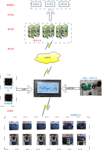 采用落地式網(wǎng)孔掛板,各個(gè)節(jié)點(diǎn)通過亞克力基板固定在車輛分解圖上。 節(jié)點(diǎn)可自由拆卸,自由組合,既能在網(wǎng)板上形成完整的車載系統(tǒng),又可以獨(dú)立成為一個(gè)實(shí)驗(yàn)單元。 主要包括高性能車載導(dǎo)航終端,傳感器節(jié)點(diǎn),行車記錄儀,倒車影像儀,GPS/北斗雙模定位模塊以及4G移動(dòng)通信模塊。 傳感器節(jié)點(diǎn)包含溫濕度、光照度、空氣質(zhì)量PM2.5濃度、胎壓、尾氣CO濃度、CO2濃度、車速油耗以及行駛方向等監(jiān)測(cè)節(jié)點(diǎn),每個(gè)節(jié)點(diǎn)都是獨(dú)立的模塊。 能夠進(jìn)行ZigBee、WiFi、藍(lán)牙、以太網(wǎng)、CAN、232、485通信。 系統(tǒng)采用B/S架構(gòu),提供免費(fèi)云服務(wù)平臺(tái),支持本地車載終端和WEB端進(jìn)行車輛環(huán)境參數(shù)的實(shí)時(shí)監(jiān)測(cè)。 具體功能應(yīng)包括: (1)車內(nèi)環(huán)境參數(shù)實(shí)時(shí)監(jiān)測(cè) (2)數(shù)據(jù)查詢與告警處理 (3)歷史數(shù)據(jù)導(dǎo)出 (4)行車記錄儀與倒車影像監(jiān)控 (5)遠(yuǎn)程實(shí)時(shí)監(jiān)控 (6)車輛實(shí)時(shí)定位 (7)車載導(dǎo)航與語音播報(bào) 提供各個(gè)節(jié)點(diǎn)或設(shè)備的電路原理圖、通信協(xié)議文檔、Zigbee組網(wǎng)案例、CAN通信案例、Android應(yīng)用開發(fā)等實(shí)驗(yàn)指導(dǎo)書。 |