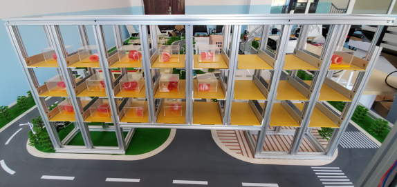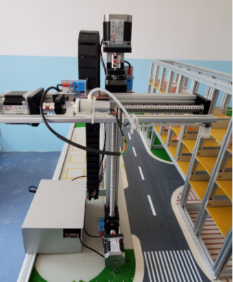 模擬的立體倉庫的庫位是可伸縮移動的。它主要由電動絲杠滑臺、滑臺驅動器、滑臺控制器三部分組成,安裝在鋁合金框架內,形成一個至少4庫位的立體倉庫。