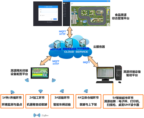 TYK-SP01型 食品溯源物聯網實訓系統主要分為農牧業(yè)生產區(qū)、加工廠、交通運輸、倉儲區(qū)、超市銷售結算區(qū),分別實現智能農牧業(yè)系統、食品加工標簽智能識別系統、車輛運輸跟蹤管理系統、倉儲管理系統、智能超市結算系統等。