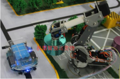 對于不規(guī)則貨物,可采用機器臂控制系統裝卸貨。六自由度機械臂的臂部由大臂、小臂組成,一般具有兩個自由度,即伸縮、回轉、俯仰或升降,采用單片機控制運動軌跡。當小車到達裝卸貨指定地點時,通過無線向管理平臺發(fā)出命令,管理平臺接收到后,通過無線通信向機器臂控制器發(fā)送裝卸貨指令,控制器接收到命令后,就按照指定的取貨位置,操作機器臂經過回轉、伸縮、升降、俯仰等幾組動作組合,實現貨物的自動裝卸。貨物裝卸完成后,運輸車自動離開。