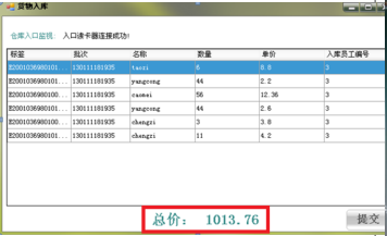 稱重功能首先通過RFID讀寫器讀出商品上RFID標簽信息,并將此商品在電子秤上稱出重量,同時輸入商品單價并結算出總價,*后將商品的名稱,價格信息通過標簽打印機打印出對應信息和用于溯源與結算的二維碼。