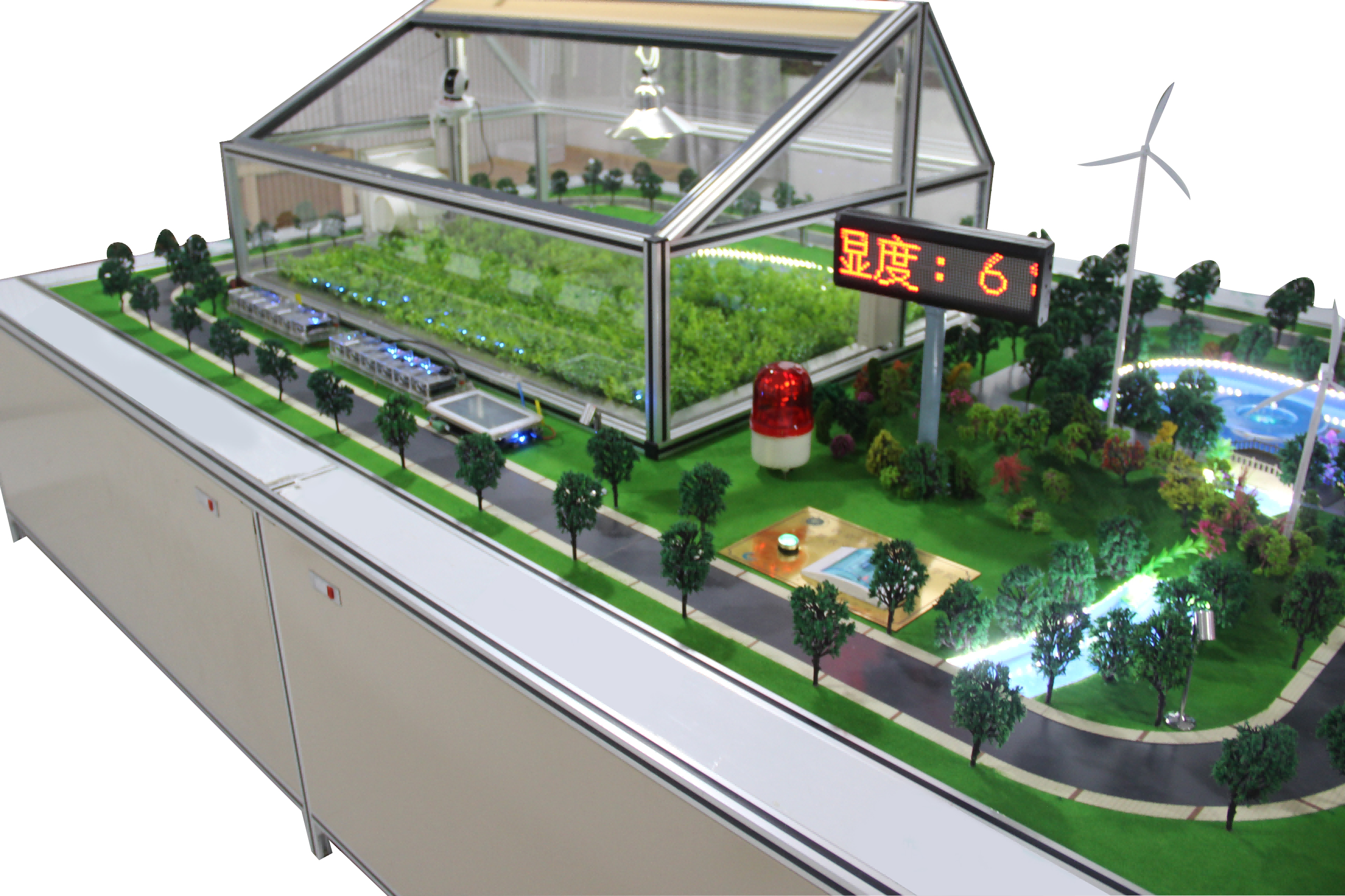 主體采用一個鋁合金金屬骨架和有機(jī)玻璃墻壁組成的農(nóng)業(yè)大棚,與智能網(wǎng)關(guān)、感知節(jié)點、控制設(shè)備以及執(zhí)行系統(tǒng)一起,構(gòu)成完整的農(nóng)業(yè)大棚系統(tǒng),包括:透明溫濕度大棚、自動遮陽罩、水泵及噴頭、仿真植物和真實植物、水循環(huán)系統(tǒng)、通風(fēng)系統(tǒng)、光照調(diào)節(jié)系統(tǒng)、溫度調(diào)節(jié)系統(tǒng)、無線傳感器網(wǎng)絡(luò)設(shè)備等。 整體參考尺寸:長×寬×高=2×1.6×0.76(米); 由于各個學(xué)校具體情況不同,公司除了提供標(biāo)準(zhǔn)的鋼架模型外,還可以根據(jù)學(xué)校需求進(jìn)行定制設(shè)計,包括外形尺寸,主體材質(zhì),以及功能設(shè)計等。 |