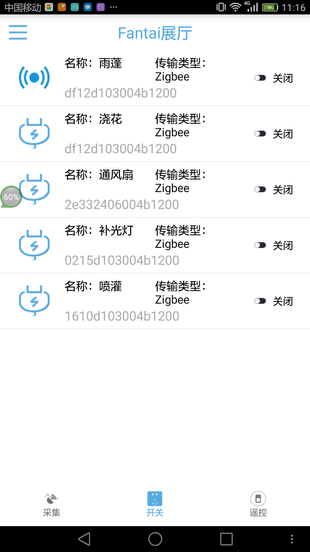 功能:支持315M、433M、紅外等無線頻段的轉(zhuǎn)發(fā),通過智能遙控器,統(tǒng)一接入ZIGBEE網(wǎng)絡(luò),由物聯(lián)網(wǎng)網(wǎng)關(guān)統(tǒng)一管理。 由ZigBee通訊模塊、315/433MHz微功耗超外差無線收發(fā)模塊、紅外收發(fā)模塊、以及控制主板組成; 控制主板:采用51單片機(jī),具有射頻、紅外、ZigBee信號收發(fā)功能,射頻編解碼壓縮算法保證低數(shù)據(jù)量傳輸; 紅外收發(fā):內(nèi)置7個紅外發(fā)射頭,多方位水平發(fā)射,保證每條命令準(zhǔn)確送達(dá),可學(xué)習(xí)并遙控多種紅外設(shè)備,直線距離約8米; 射頻收發(fā):包含315/433射頻硬件,可學(xué)習(xí)并遙控多種射頻設(shè)備,直線距離約8米; 紅外頻率:38KHz; 射頻頻率:315/433MHz; ZigBee頻率:2.4GHz,Z-Stack2007協(xié)議棧; 輸入電壓:DC 5V; 輸入電流:≥1A。 |