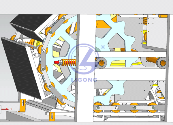 采用彈簧式張緊裝置,使梯級鏈條始終保持張緊狀態(tài),及時抵消在可控范圍內(nèi)因梯級伸長而造成梯級(踏板)等相關(guān)部件的偏離、晃蕩、沖撞與噪聲。本裝置全部采用鋁合金板材制作。