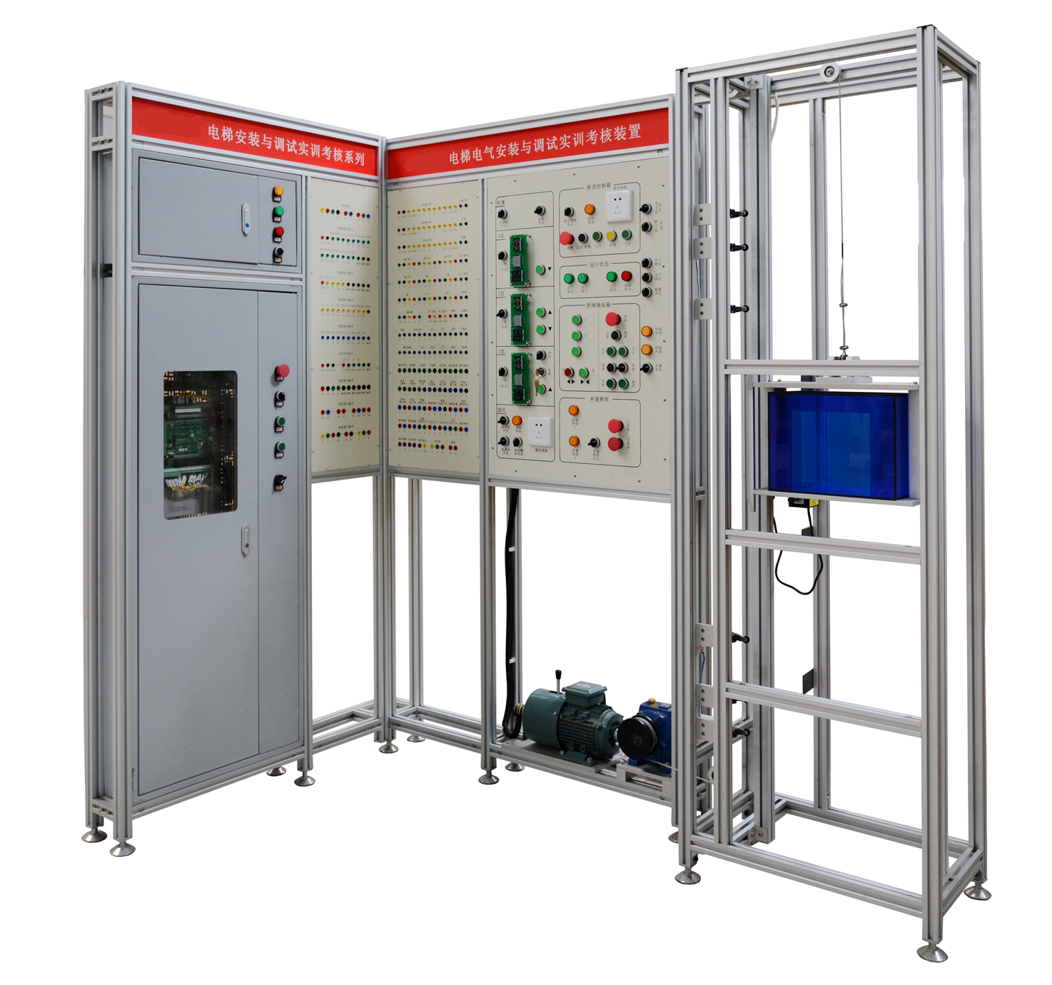 1、電梯電氣安裝調(diào)試實(shí)訓(xùn)考核裝置采用了“L”形支架結(jié)構(gòu)能夠減少占地面積,同時(shí)多臺(tái)并排布置時(shí)能夠形成實(shí)訓(xùn)室工位式布局;
