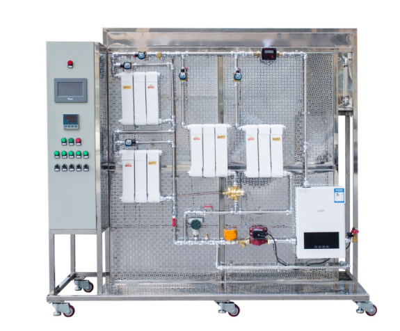 一、概述 涉及供熱設備構造、系統(tǒng)組成與設計、運行調(diào)節(jié)及維護等方面的實訓,展示不同熱水采暖系統(tǒng)型式的特點。注重學生職業(yè)能力的培養(yǎng),強化其實踐能力與專業(yè)技能。使學生更好地了解熱水采暖系統(tǒng)各種安裝型式在實際中的應用,對供熱工程、采暖系統(tǒng)、采暖設備及管道,采暖常規(guī)器件認識、使用和安裝部位等有初步認識,同時也使學生更好的讀懂供暖系統(tǒng)原理圖,為以后從事相關專業(yè)工作打下良好基礎。 二、主要技術指標 ??1.工作電源:單相三線制AC220V±10% 50Hz; 2.外形尺寸:2000×800×1730mm?(長×寬×高); 3.模型材料:不銹鋼; 4.整機功耗:<3.5KVA; 5.裝置底部安裝有帶剎車腳輪,方便裝置的移動和固定; 6.安全保護措施:具有接地保護、漏電過載保護、誤操作保護功能;安全性符合相關的國標標準,所有材質(zhì)均符合環(huán)保標準。...