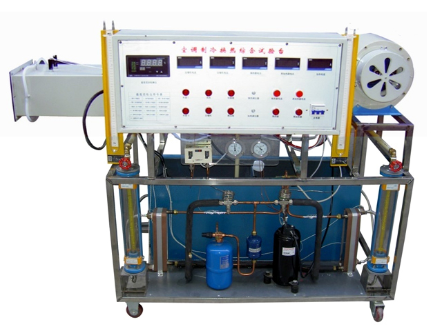 1、主要組成:16路巡檢儀、pt100、測試風(fēng)洞;引風(fēng)機(jī)、調(diào)節(jié)風(fēng)門、制冷壓縮機(jī)、板式換熱器、儲液罐、U型管、轉(zhuǎn)子流量計、斜管微壓計、膨脹閥、干燥過濾器、高低壓控制器、加熱器、壓力表、加濕器、水泵、水箱、數(shù)顯表、膨脹閥、不銹鋼移動式實(shí)驗(yàn)臺等