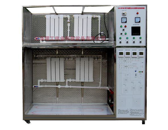 TYK-RCN01型 地暖及辦公樓垂直供暖實訓(xùn)系統(tǒng)主要配置由供水箱、循環(huán)水泵、分集水器、電動閥、液晶顯示面板,系統(tǒng)原理展板、智能溫控制儀等、一二層處均設(shè)熱電動調(diào)閥門,一層供暖系統(tǒng)為雙管同程式供暖系統(tǒng),一層地板采用回旋式地暖輔設(shè),左、中、兩面框壁各設(shè)置銅鋁復(fù)合散熱器、薄壁鋼管散熱器(藝術(shù)造型);二層供暖系統(tǒng)為單管串聯(lián)式系統(tǒng),散熱器左、中、薄壁銅鋁管散熱器(藝術(shù)造型)、外觀整潔。二層地板采用回旋式地暖輔設(shè)、供回水主立管沿框架左側(cè)設(shè)置;控制采用智能溫控系統(tǒng),手自動控制方式,直顯示。