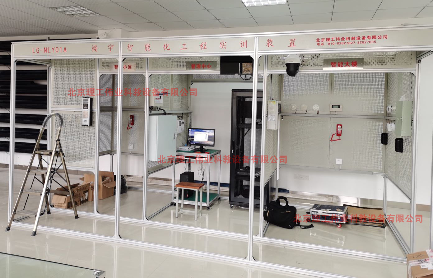 1 | 智能建筑模型 | 由鋁合金型材框架和安裝布線網(wǎng)孔板組成,4660×2220×2300mm(長×寬×高),分為智能大樓、智能小區(qū)、管理中心和樓道等區(qū)域,智能大樓設(shè)計為兩層結(jié)構(gòu),器件采用內(nèi)六角螺絲和工程塑料卡件配合安裝。 | 1 | 臺 | ||