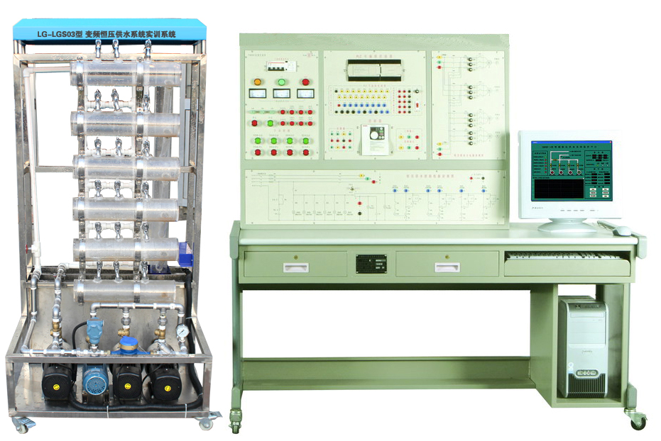 “TYK-LGS03型 變頻恒壓供水系統(tǒng)實(shí)訓(xùn)裝置”集PLC、變頻調(diào)速、過(guò)程控制、工程組態(tài)技術(shù)于一體。它由六層住宅消防、生活供水系統(tǒng)(實(shí)物模型),控制平臺(tái)兩大部分組成,包含了可編程控制器、變頻器、變頻磁力驅(qū)動(dòng)泵、休眠泵、消防泵、壓力變送器、壓力儀表、輸水管道、消防栓、家用水龍頭、蓄水池等工程設(shè)備??刂破脚_(tái)采用PLC+變頻器的開(kāi)放式控制結(jié)構(gòu),可以完成多種模式下的樓層恒壓供水實(shí)訓(xùn)實(shí)訓(xùn),為教學(xué)研究變頻恒壓供水技術(shù)提供一個(gè)開(kāi)放的操作平臺(tái)。它是一款適合于大學(xué)及中、高職院校電氣自動(dòng)化、樓宇自動(dòng)化、建筑電氣、智能建筑等專業(yè)的綜合型實(shí)訓(xùn)設(shè)備。