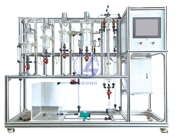 有機玻璃反應釜、管式反應器、轉(zhuǎn)子流量計、水箱、水泵、電機、數(shù)字電導儀閥門、管道、中央處理器、觸摸屏、高品質(zhì)鋁合金型材框架。