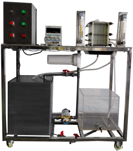 有機(jī)玻璃外箱體、電滲析器、直流穩(wěn)壓電源、配水箱、進(jìn)水泵、流量計(jì)、壓力表、不銹鋼框架、控制屏。