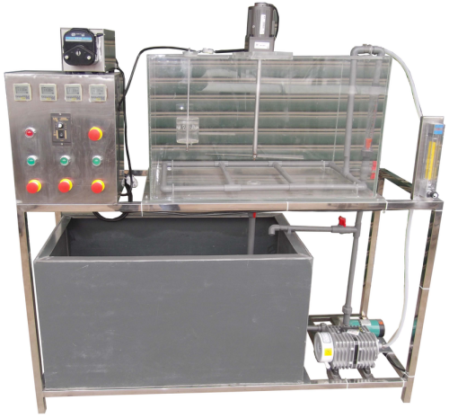 反應(yīng)池、曝氣頭、抽吸泵、氣泵、水泵、流量計(jì)、配水箱、穿孔曝氣器、不銹鋼可移動(dòng)框架、控制屏。