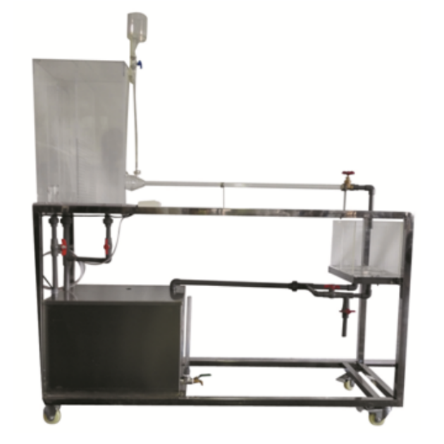 一、實(shí)驗(yàn)?zāi)康模?1、觀察流體在管內(nèi)流動(dòng)的兩種不同型態(tài)。 2、觀察湍流狀態(tài)下管路中流體速度分布狀態(tài)。 3、測(cè)定流動(dòng)形態(tài)與雷諾數(shù)Re之間的關(guān)系及臨界雷諾數(shù)值。 二、主要配置: 有機(jī)玻璃水槽、示蹤劑盒、示蹤劑流出管、細(xì)孔噴嘴、玻璃觀察管、計(jì)量水箱、刻度標(biāo)尺、秒表、玻璃溫度計(jì)、不銹鋼框架。 ? 三、技術(shù)參數(shù): 1、運(yùn)行環(huán)境:溫度0-40℃,相對(duì)濕度:≤90%RH,電源:220V/50Hz,可連續(xù)操作。 2、透明有機(jī)玻璃觀察管:內(nèi)徑Φ15mm。 3、實(shí)驗(yàn)水箱容積40L透明有機(jī)玻璃制作,帶有穩(wěn)壓溢流口。 4、計(jì)量水箱:容積6L透明有機(jī)玻璃制作,帶計(jì)量刻度。 5、指示液為紅墨水或其它顏色鮮艷的液體。 6、框架及臺(tái)面均為304不銹鋼材質(zhì),結(jié)構(gòu)緊湊,外形美觀,操作方便。 7、外形尺寸:1500×450×2000mm(長(zhǎng)×寬×高),框架為可移動(dòng)式設(shè)計(jì),帶腳輪及禁錮腳。...