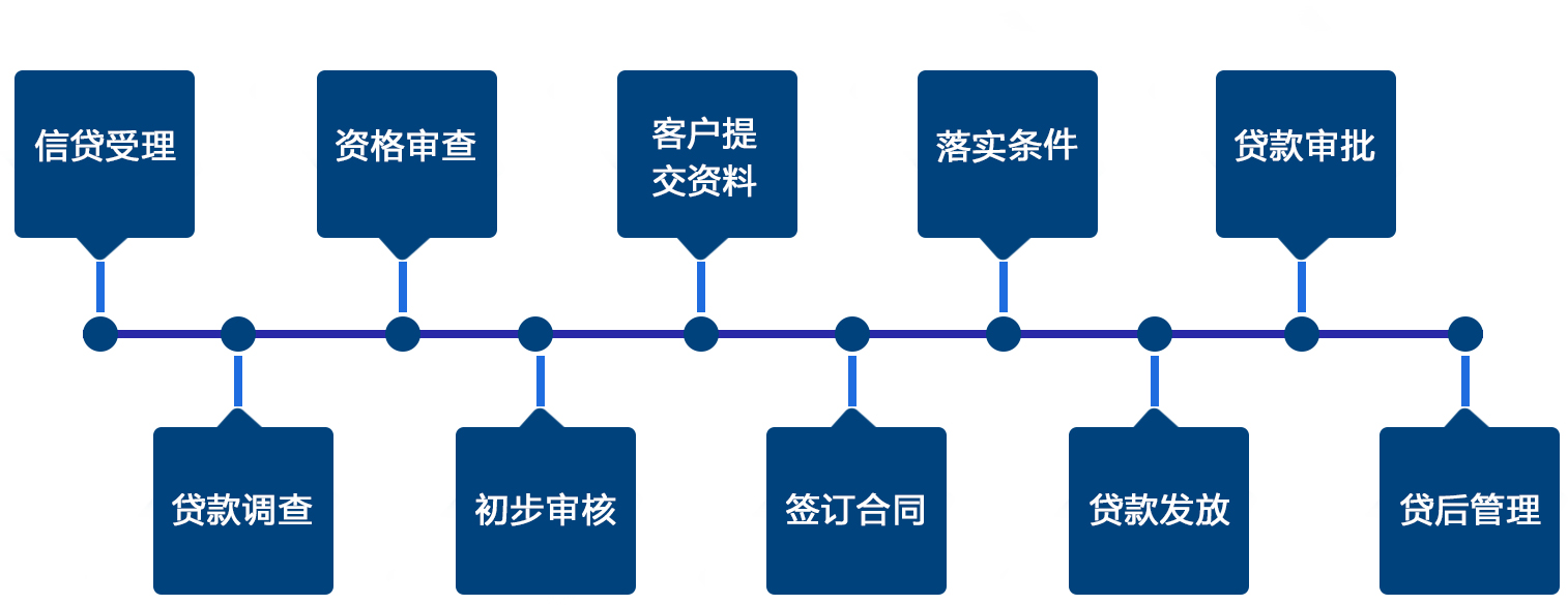 ? ? 實訓主體分五類流程:短期貸款、長期貸款、票據(jù)貼現(xiàn)、個人住房抵押貸款、個人汽車消費貸款。提供靈活的業(yè)務(wù)流程控制,包括受理、資格審查、貸款調(diào)查、貸款審批、落實條件、簽訂合同、貸款發(fā)放、貸后管理等步驟。