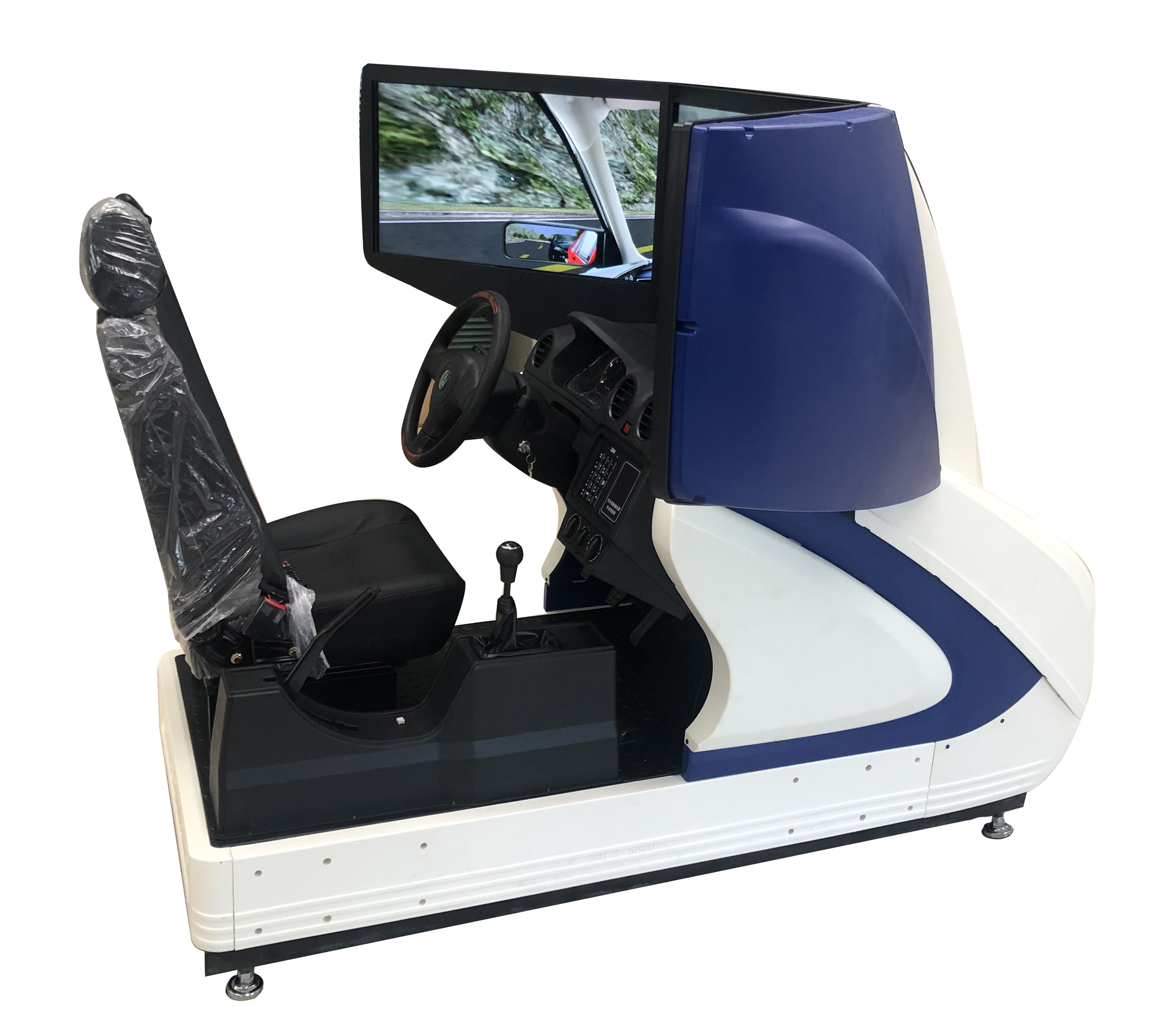 三屏主被動(dòng)式汽車駕駛模擬器座艙采用真車操作部件,為學(xué)員提供一個(gè)真車的操作環(huán)境。提供的訓(xùn)練場景按中國道路的實(shí)際情況設(shè)計(jì),可以分級設(shè)置,能訓(xùn)練學(xué)員的基本駕駛操作技術(shù)和處理緊急情況的應(yīng)變能力,能使學(xué)員快速掌握駕駛理論知識和基本操作技能。駕駛座艙可以獨(dú)立使用,也可以通過數(shù)據(jù)通信單元與電腦主控臺配合使用。座艙單獨(dú)使用時(shí),可以實(shí)現(xiàn)汽車駕駛教學(xué)與訓(xùn)練功能,和主控配合使用時(shí),整個(gè)系統(tǒng)可以實(shí)現(xiàn)由教師監(jiān)管任何一學(xué)員實(shí)時(shí)駕駛畫面,并能將每個(gè)學(xué)員檔案成績打印等功能。