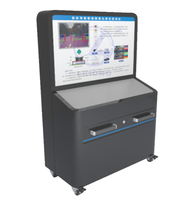 實訓臺由道路模擬系統(tǒng)、控制器和攝像頭傳感器,道路模擬系統(tǒng)用于模擬道路實際運行環(huán)境,包含晴天、雨天、夜晚等工況;控制器內嵌深度學習圖像檢測算法,接收攝像頭數(shù)據并處理輸出。學生通過實訓臺學習攝像頭安裝、標定、參數(shù)配置等內容,深入了解基于攝像頭的車道保持、自動緊急剎車等ADAS功能。