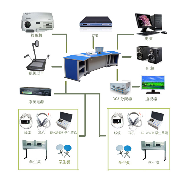 系統(tǒng)概述      TYK-2540B型 語言學(xué)習(xí)系統(tǒng)采用串行通訊技術(shù),除符合國家標(biāo)準(zhǔn)《GB/T14185-93》語言學(xué)習(xí)系統(tǒng)要求外, 并結(jié)合現(xiàn)代化教學(xué)需求,優(yōu)化和完美各種功能,使該系統(tǒng)結(jié)構(gòu)簡單、安裝方便、運(yùn)行穩(wěn)定等,是目前市場上功能較強(qiáng)大、性價(jià)比極高的多媒體語言學(xué)習(xí)系統(tǒng)。      不依賴計(jì)算機(jī)的語音通訊系統(tǒng):傳統(tǒng)的語音通訊系統(tǒng)的問題是:一旦計(jì)算機(jī)出現(xiàn)故障不能工作,全班就“集體失聲”,而一般情況下,受各種因素影響,計(jì)算機(jī)出現(xiàn)故障的情況非常普遍,因此獨(dú)立的語音通訊系統(tǒng)的好處是:可代替電腦實(shí)現(xiàn)除標(biāo)準(zhǔn)考試外的所有功能,以保證正常教學(xué)。DSN-8多媒體操控平臺○ 錄音雙卡、中控系統(tǒng)和控制鍵盤三合一模式,實(shí)現(xiàn)計(jì)算機(jī)與多媒體操控平臺相互獨(dú)立控制的雙控制模式。 完成語音通訊的同時,還具備強(qiáng)大的多媒體切換功能○ 可通過按鍵控制主控系統(tǒng),能方便直觀地用鼠標(biāo)點(diǎn)擊;輸出兩路音源供學(xué)生選擇;中文菜單提示操作; 可對周邊音視頻設(shè)備進(jìn)行控制;5.1寸點(diǎn)陣液晶顯示狀態(tài),背光可調(diào)?!?雙卡錄音機(jī)可進(jìn)行一般...
