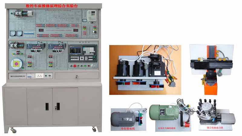 數(shù)控車床原理示教機(jī)教學(xué)設(shè)備系統(tǒng)采用GSK980TB車床數(shù)控系統(tǒng),數(shù)控車床的X、Z軸由伺服電機(jī)控制,主軸由變頻器控制,并帶有光電編碼器,刀架為四工位電動(dòng)刀架,學(xué)生可以學(xué)習(xí)到TYK980TB伺服電機(jī)的控制、變頻器控制、電動(dòng)刀架、霍爾元件、接近開關(guān)的原理、編程、接線及在數(shù)控機(jī)床中的應(yīng)用等及數(shù)控車床編程、加工、維修。